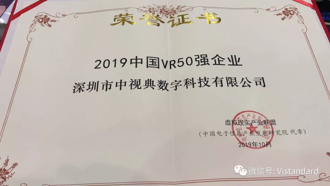 中視典入選“2019中國(guó)VR50強(qiáng)企業(yè)”