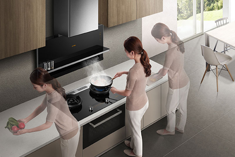 煙機(jī)靜壓值達(dá)至850Pa新高,突破22m3/min大排量,烹飪高峰也能暢吸暢排,避免油煙倒灌。同時(shí),煙灶聯(lián)動(dòng)和煙蒸烤聯(lián)動(dòng)可以自動(dòng)開(kāi)啟煙機(jī),第一時(shí)間把煙汽吸走??梢哉f(shuō),新的超薄低吸上排油煙機(jī)不僅解決了碰頭這個(gè)老難題,還有更為優(yōu)良的吸油煙效果。